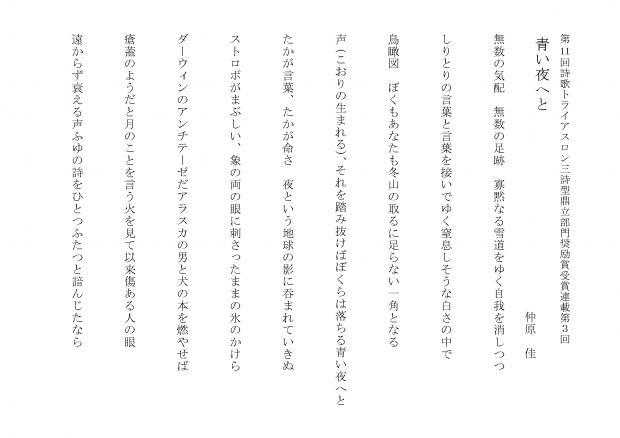 第11回詩歌トライアスロン三詩型鼎立部門奨励賞受賞連載3回