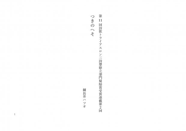 タグ: 11回, 奨励賞, 綱長井ハツオ, 自由詩, 詩歌トライアスロン, 連載, 鼎立
