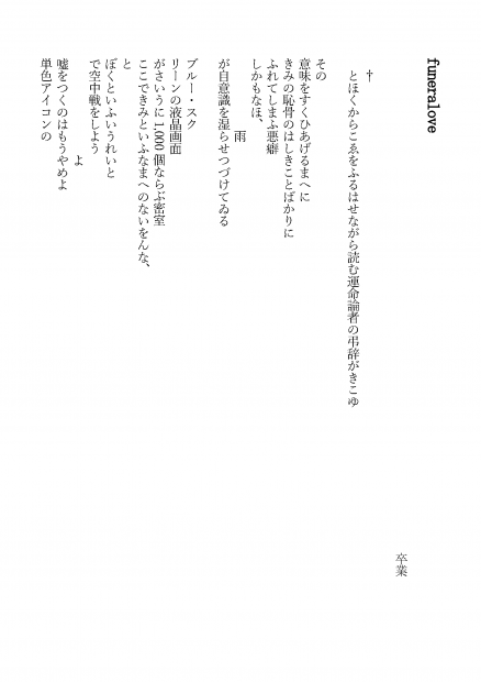 とほくからこゑをふるはせながら読む運命論者の弔辞がきこゆ