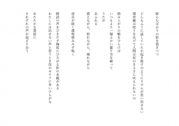 朗読の声をひきだす胸底にひろがる影の水鏡がある