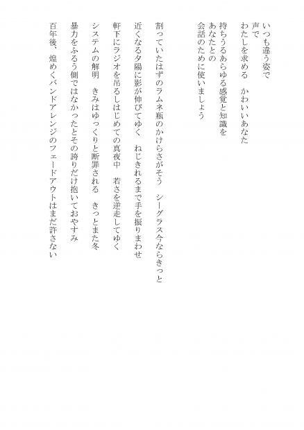 千年後、わたしの舌の上にある消失点を光らせて待つ